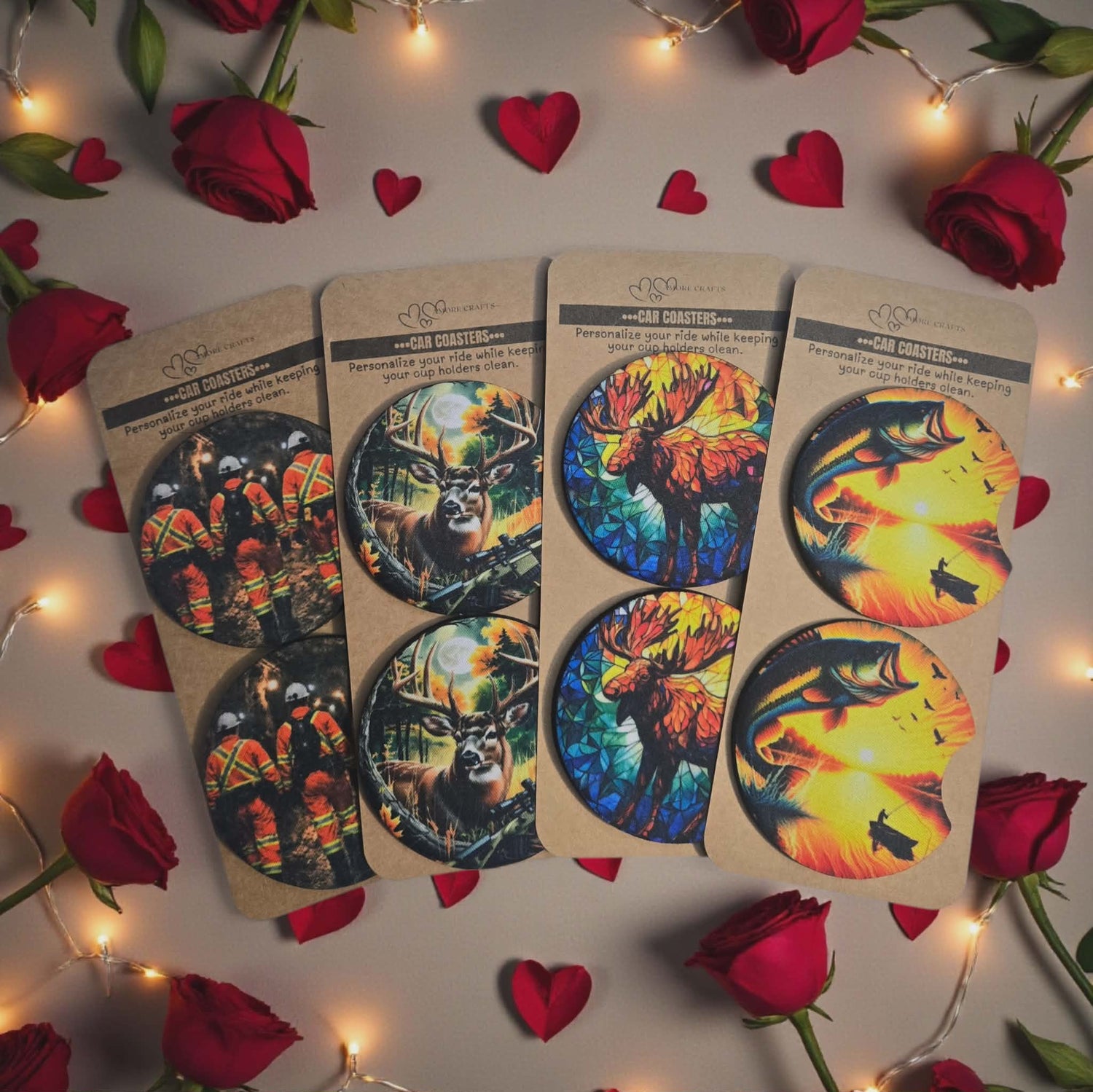 New car coaster designs are here! I’ve been busy creating fresh images to add a little personality to your ride. From cute to bold, these coasters are made to keep your cup holders clean and stylish.